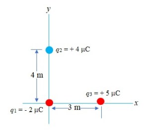 Let us consider a charge q1 = 2 mC and a charge q2 = 18 mC held respectively at the origin (x = 0) and x = 1 m.